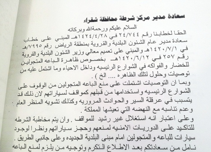 ثم أعدت قراءة خطابات البلدية فوجتها موجهة للجهات التنفيذية بحيث لا تشير إلا إلى أن السيارات التي تعرض الحبحب أوالجح تسبب الازدحام