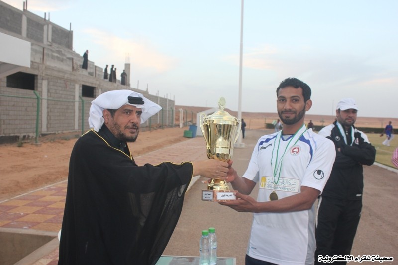 وبعد نهاية المباراة توج نائب مدير مكتب رعاية الشباب بشقراء الاستاذ عبدالعزيز المهنا كابتن الوشم ولاعبي الفريق والجهاز الفني والإداري بكأس البطولة والميداليات الذهبية .