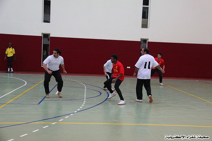 أفتتحت مساء اليوم بطولة كرة القدم للصالات المغلقة للدوائر الحكومية في نادي الحي بثانوية الملك عبدالله وذلك ضمن النشاطات التي يقيمها نادي الحي والتي تستهدف جميع فئات المجتمع وقد بدء الحفل بدخول أطفال النادي يحملون أعلام ولوحات الدوائر الحكومية المشاركة في الدورة الستة عشر وهي : أمن الطرق - البلدية - المرور - المستشفى - الشرطة - الزراعة - مصلحة المياه - المراكز الصحية - المالية - المعهد الصناعي - رعاية الشباب - التأهيل الشامل - دار التربية الإجتماعية - شركة الكهرباء - جامعة شقراء - البنوك .. وقد بدء الحفل بتلاوة من القرآن الكريم تلاها الطالب / عبدالعزيز الحمادي