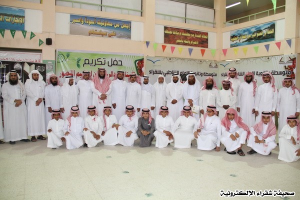 توج التكريم حضور مدير التربية والتعليم بمحافظة شقراء الأستاذ / سامي بن عبدالله الشويمي وعدد كبير من زملاءه المعلمين وابناءه الطلاب يتقدمهم مدير المدرسة الأستاذ / فهد عواض الصفق والذي اظهر تميزا ورونقاً رائعاً للحفل .