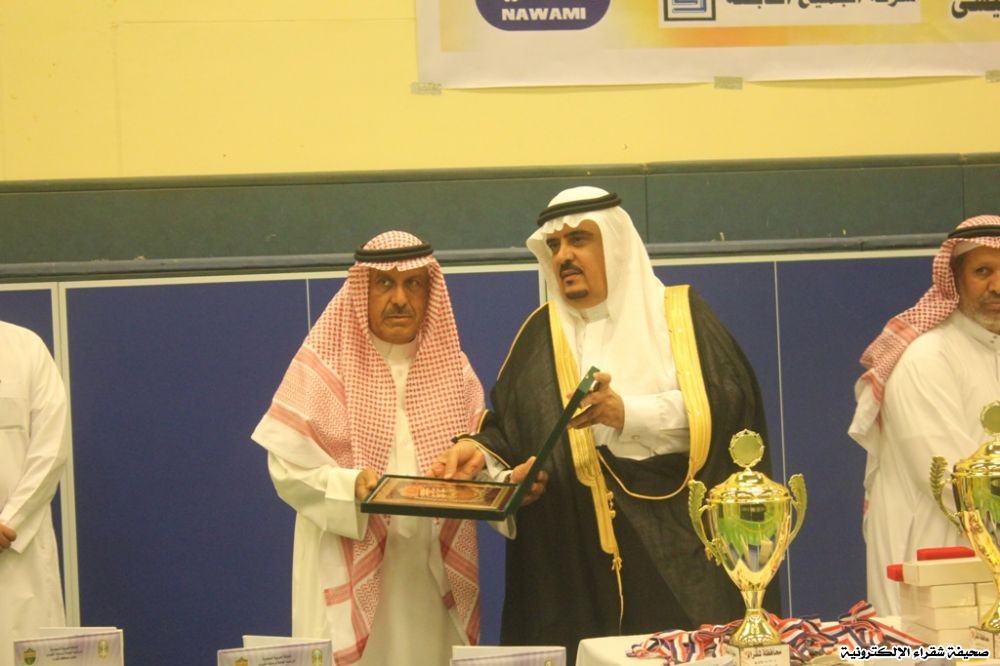 وفي ختام المباراة كرم محافظ شقراء الأستاذ : محمد الهلال ومدير مكتب رعاية الشباب الأستاذ : علي الرديني الجهات الراعية للبطولة بحضور وهم شركة الرقيب القابضة الشيخ : محمد بن حمد العيسى- شركة الجميح القابضة الشيخ عبدالعزيز بن علي الشويعر - مخابز نوامي )