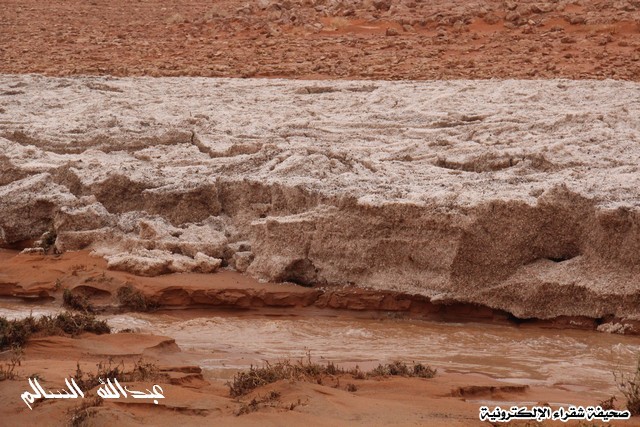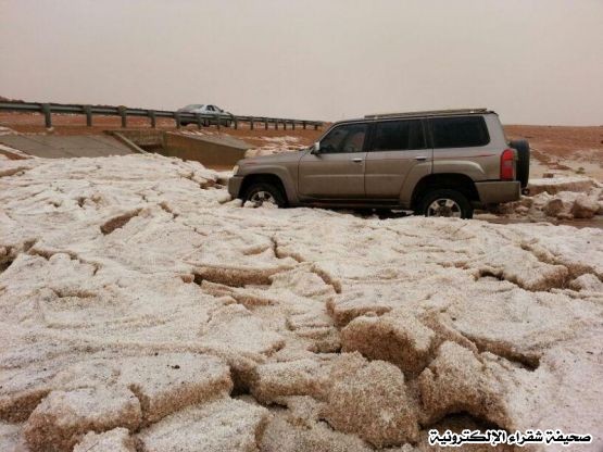 ورصدمصور الصحيفة ايمن الشقاري صور رائعة للكميات الكبيرة من البرد التي سقطت في جنوب شعيب ابا الطلاح .. وتحديداً 50 كيلو عن شقراء ( نفود الملحا ) كمية كبيرة من البرد تصل إلى نصف متر .