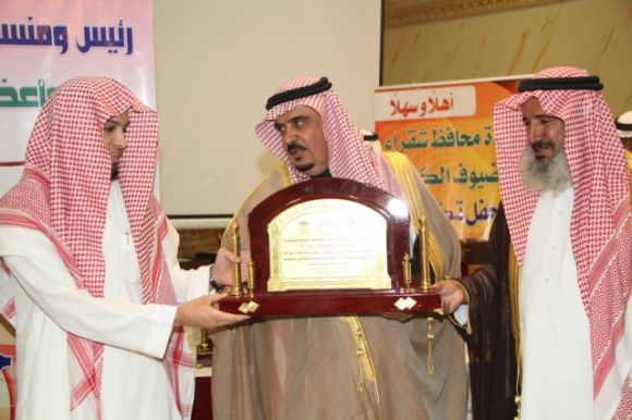 أيها الحفل الكريم اكرر الشكر لكم على حضوركم وتشريفكم لنا ونخص بالشكر محافظ شقراء الأستاذ / محمد بن سعود الهلال الذي يقدم دائماً الدعم والمساندة والتشجيع وفقه الله وسدد خطاه .