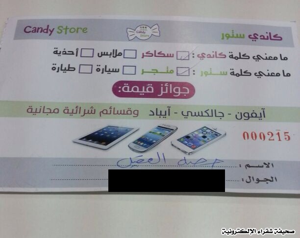 أجرى كاندي ستور للحلويات ثاني سحب له على جوائز متنوعة بين قسائم شرائية وجوال جالكسي نوت 3