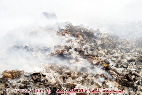 مساء يوم الجمعة الماضي اثارت رائحة الدخان العنيفه فضول محرري صحيفة شقراء واتضح حين الوصول للموقع احراق متعمد لتلك النفايات مع عدد من الإطارات القديمة !!