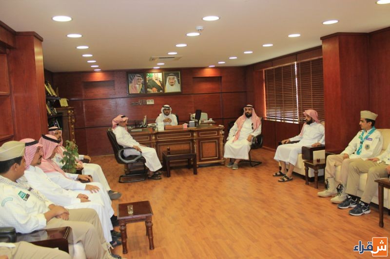 استقبل مدير تعليم شقراء الأستاذ عبدالله بن ناصر الفرحان بمكتبة قائد الكشافة الأستاذ محمد بن عمر الحيلان والفرقة الكشفية المشاركة في خدمة ضيوف الرحمن لهذا العام، والقائد الكشفي عبدالرحمن الشقيحي