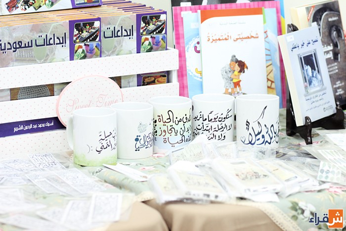 كما كان لمشروع تثقيفة الخيري حضوره المتألق مع فريقه المتطوع متيحًا للزائرات فرصة تبادل الكتب بمختلف أنواعها في فكرة فريدة من نوعها، فضلاً عن عرضه لمنتجات أخرى كالأكواب و كڤرات الجوالات المزينة بالمخطوطات العربية.