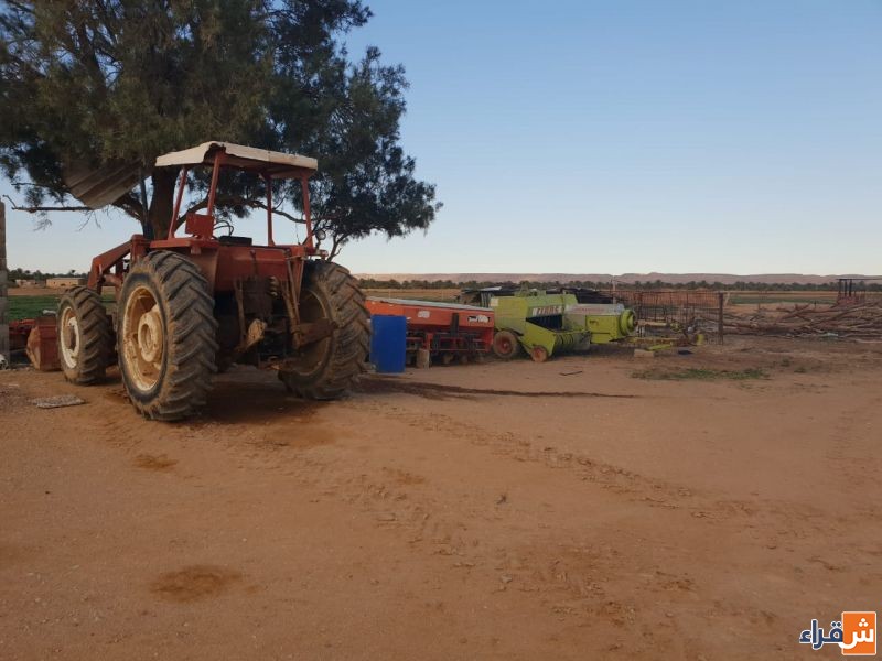 حراثه ١٠٠ حصان الجميح بمعداتها بذاره ونثاره ولبانه ولمامه وحصادة برسيم ومشط ومساح وعزاق وفجاج