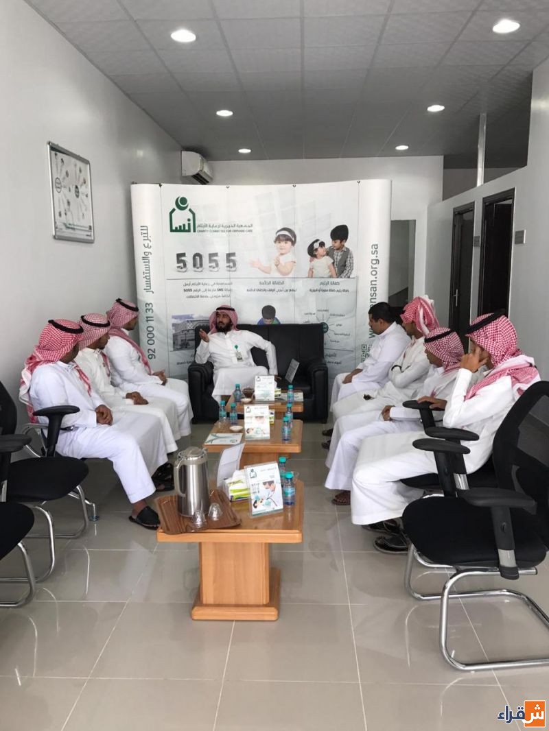 استقبل فرع جمعية ( إنسان ) بشقراء يوم الأثنين الموافق 3 / 8 / 1440هـ لجنة العمل التطوعي بكلية المجتمع بمحافظة شقراء برئاسة أ. محمد خالد العبيدي وكان في إستقبالهم مدير فرع جمعية إنسان بمحافظة شقراء أ. عبدالله بن ناصر المجيول وسكرتير الفرع أ. محمد عبدالمحسن الموسى ومسؤول الكفالات أ. عبدالرحمن محمد الشتوي وفي بداية اللقاء تم التعارف بين الجميع بعدها قام مسؤول الكفالات بشرح مفصل عن الجمعية وبداية تأسيسها وكما تم الشرح بشيء من التفصيل عن انواع الكفالات كالدائمة والسنوية والشهرية والتعليمية وغيرها وعن كيفية إيداع المبالغ لحسابات الجمعية وكيفية الصرف للأسر بطريقة تحفظ كرامة الأسر وعما يقوم به الفرع من برامج وأنشطة للأبناء على مدار السنة وفق الخطة المرسومة وفي نهاية اللقاء تم تقديم واجب الضيافة كما تم التقاط الصور التذكارية