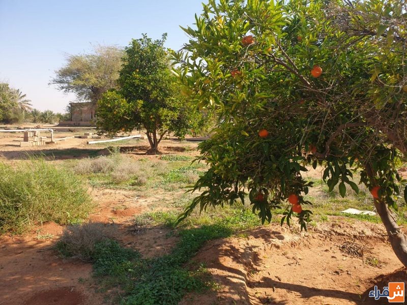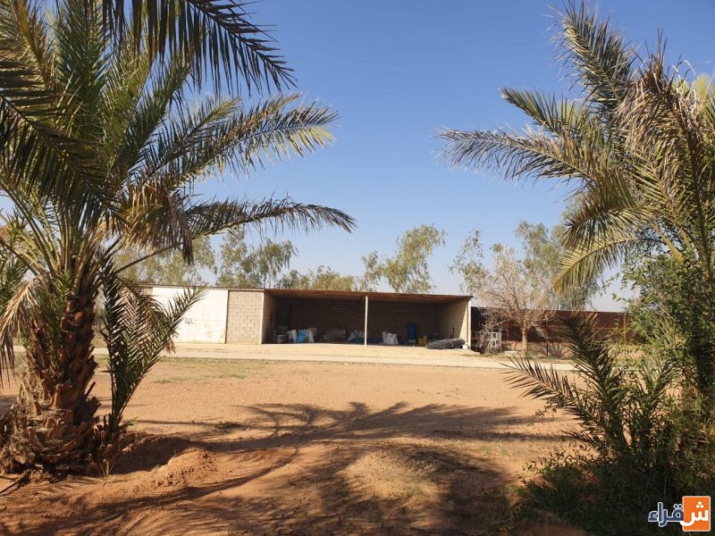 فيها حوال ٥٠ نخله وبير سطحي واشجار ومستودع وغرف