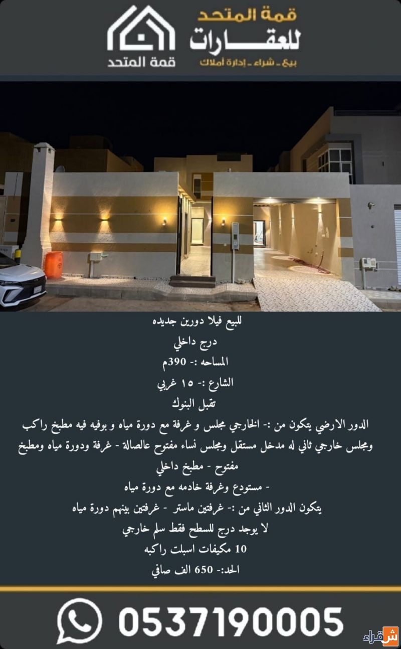 الدور الارضي يتكون من :- الخارجي مجلس و غرفة مع دورة مياه و بوفيه فيه مطبخ راكب